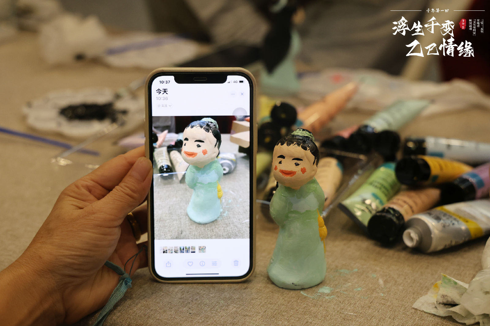 情景演绎落幕,游客们在“小青”、“小白”的现场指导下,开启了惠山泥人彩绘环节。惠山泥人制作素来有“三分塑,七分彩”的说法,足以见得彩绘在整个创作过程中的关键作用。